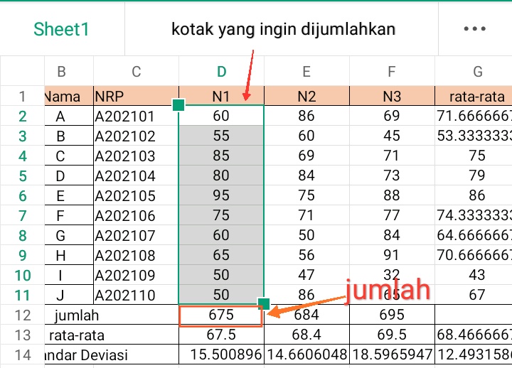 Sum merupakan fitur untuk menjumlahkan nilai-nilai yang dituju.