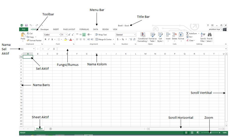 Dalam Microsoft Excel terdapat beberapa bagian atau komponen, diantaranya yaitu
