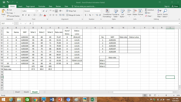 formulai IF akan diaplikasikan pada kolom Huruf Mutu dengan kondisi sebagai berikut:
